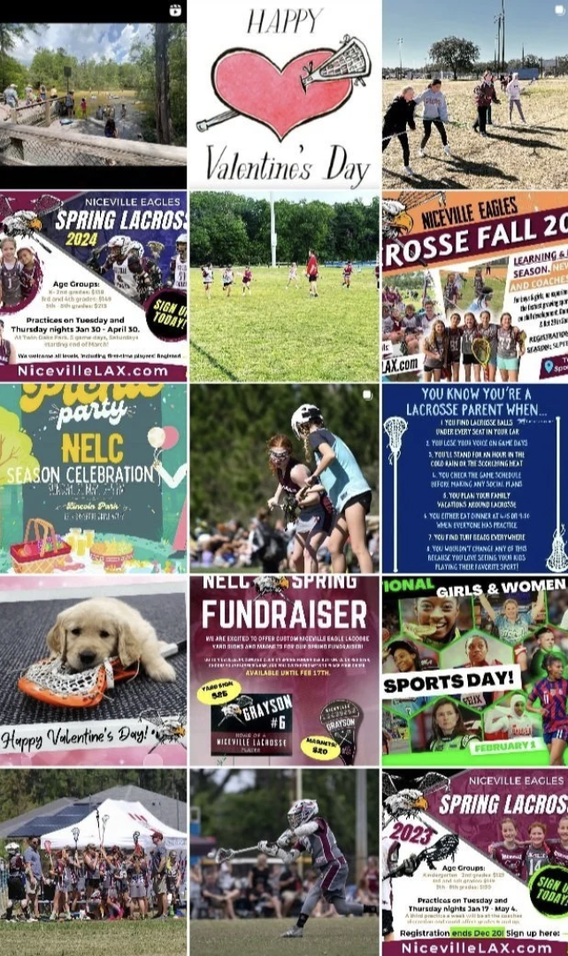 Each month, we developed content aligned with the overall strategy and conducted content shoots to capture high-quality photos and videos that performed well across platforms. Through intentional strategy, creative storytelling, and consistent posting, we’ve helped Niceville Eagles Lacrosse Club expand its reach, highlight player development, and build a strong online community around the sport.
